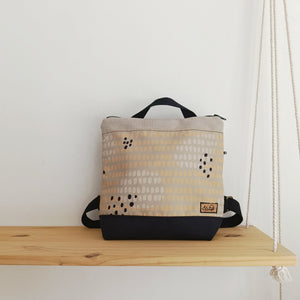 Mochila cuadrada de formas orgánicas con puntitos negros