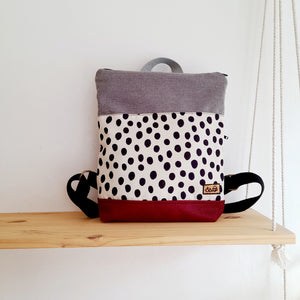Mochila rectángulo con hojas blanco y negro, granate y kaki
