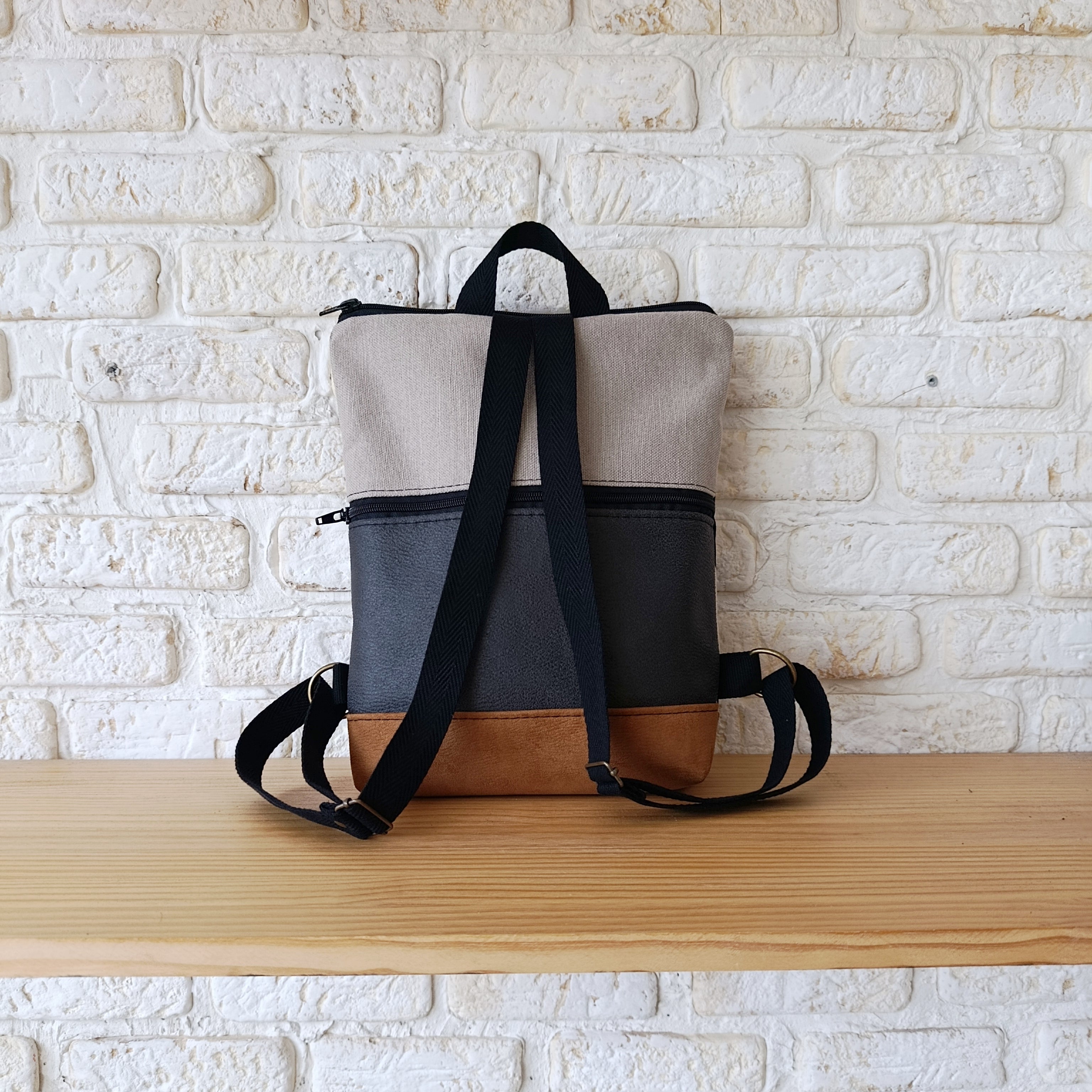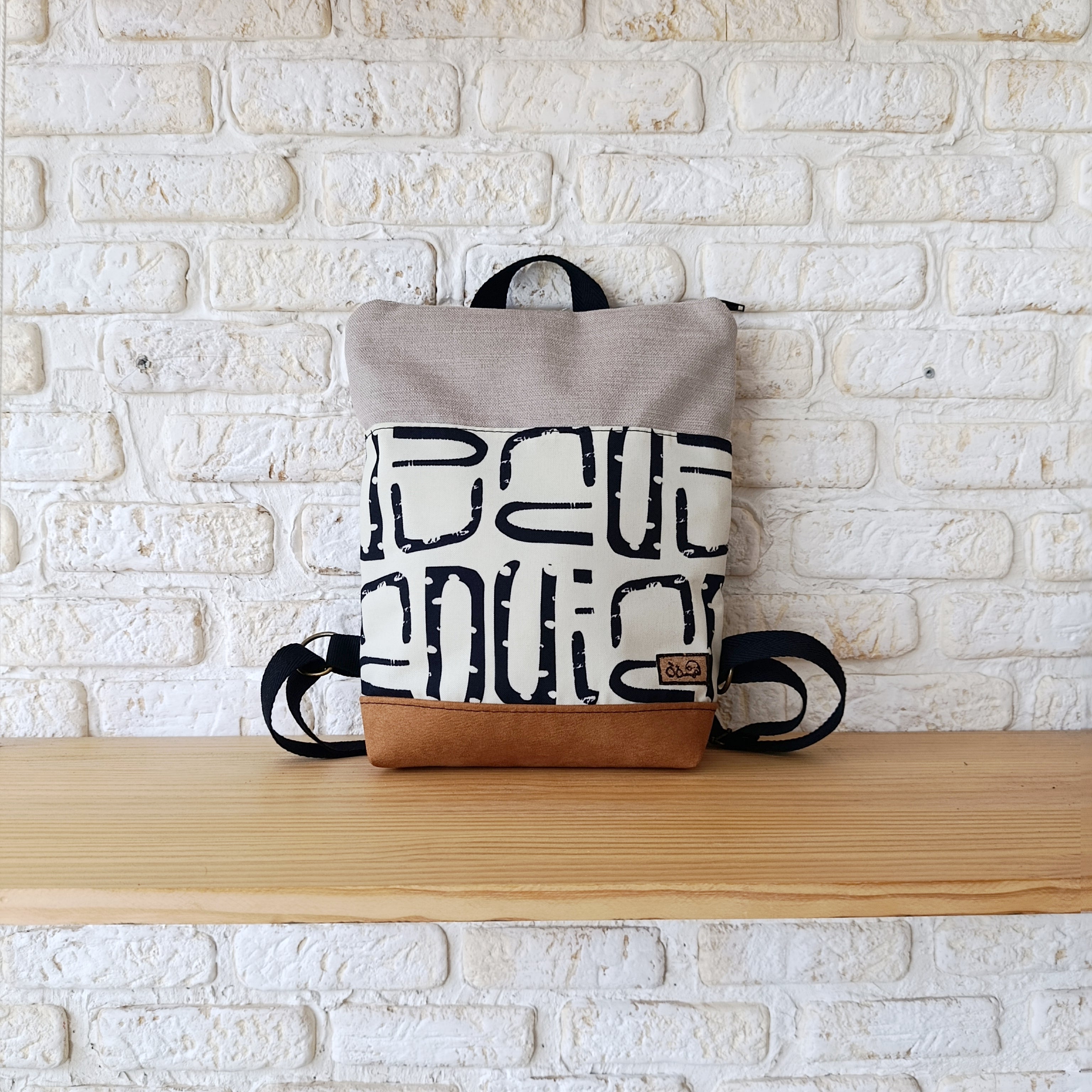 Mochila rectángulo con formas orgánicas, camel y beige