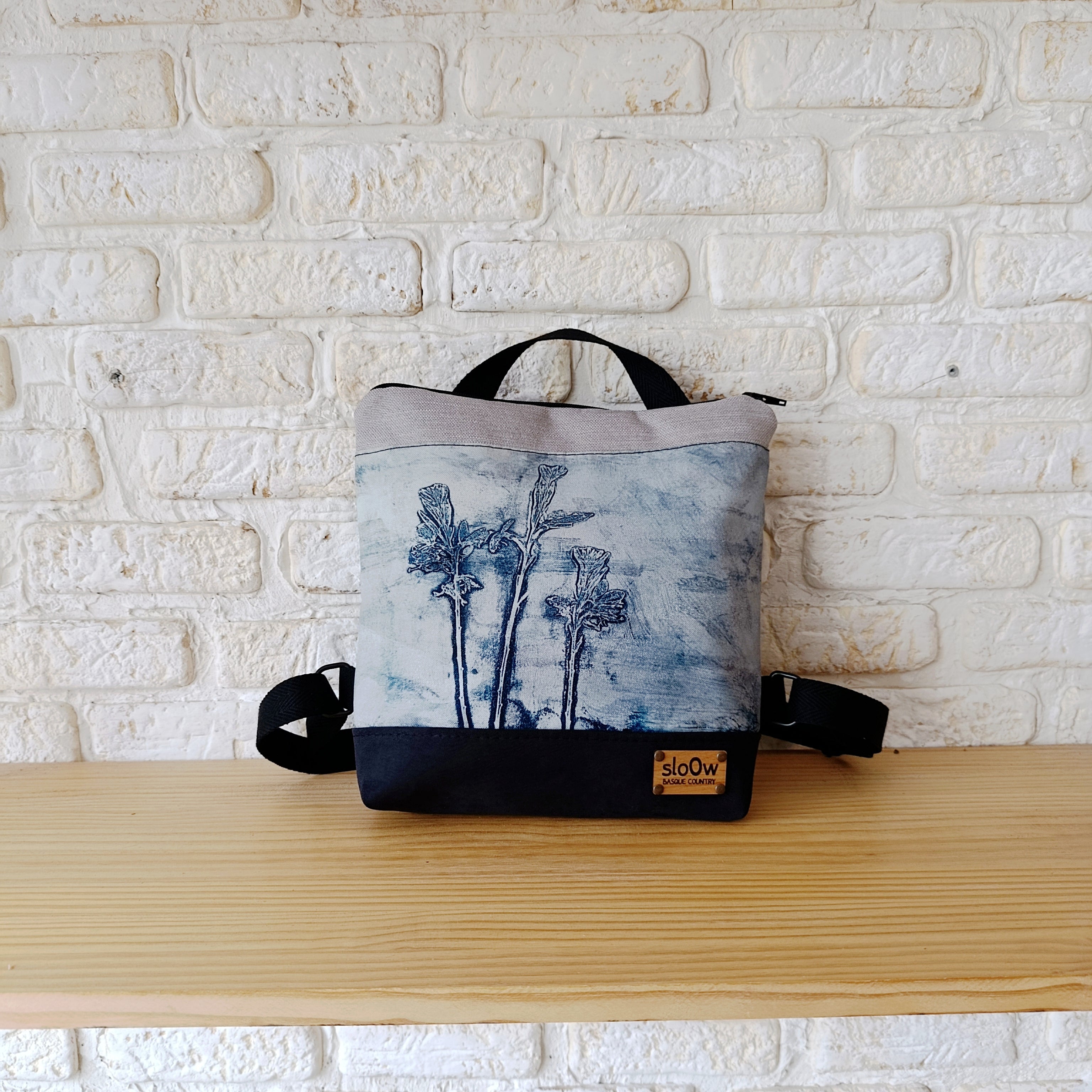 Mochila cuadrada Flor azul